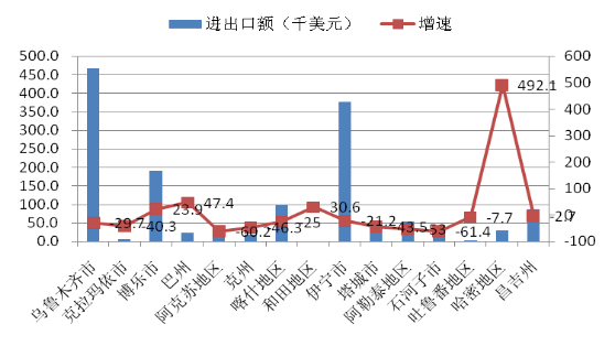 4.從區(qū)內(nèi)看,除了國(guó)家和自治區(qū)密集出臺(tái)的一系列促外貿(mào)政策措施將會(huì)逐漸發(fā)揮作用外,新疆開(kāi)通的國(guó)際貨運(yùn)班列和絲綢之路經(jīng)濟(jì)帶區(qū)域通關(guān)一體化的實(shí)施也為我區(qū)今后外貿(mào)發(fā)展提供了更多便利。