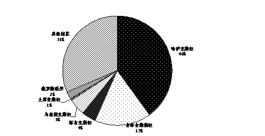 圖7 1-5月新疆與中亞五國(guó)及俄羅斯貿(mào)易額占比