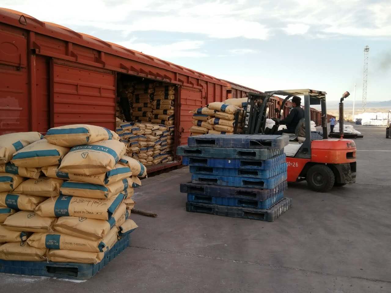 2016年9月9-10日,新疆中泰化學股份有限公司出口的袋裝聚氯乙烯整列棚車,在阿拉山口綜合保稅區(qū)內的地平線鐵路專用線成功裝車。此次共裝58噸/車的貨物計30車、63噸/車的貨物計10車,共40節(jié)哈方車皮,總重量為2730噸,終到站為烏茲別克斯坦的塔什干站。