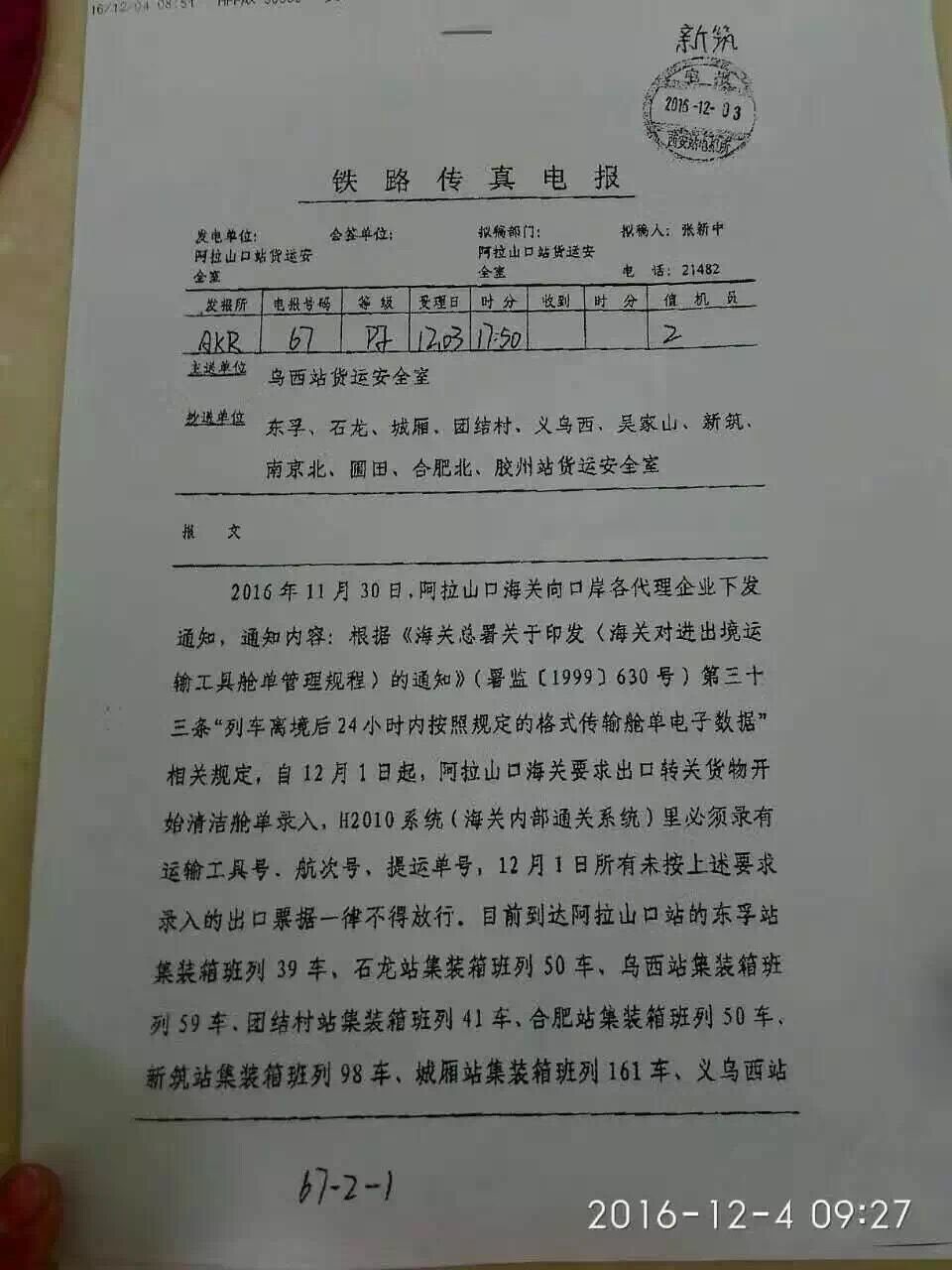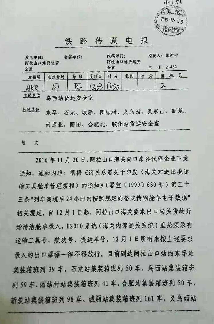 而各地陸續(xù)發(fā)運(yùn)的鐵路班列,為保證運(yùn)輸效率,發(fā)運(yùn)地采用先報(bào)關(guān)后裝車方式,造成轉(zhuǎn)關(guān)單不符合口岸海關(guān)要求,因此導(dǎo)致阿拉山口口岸貨物大量滯留,截至發(fā)稿已逾1000車,只能采用人工補(bǔ)錄放行的處理方式,擁堵或?qū)⒊掷m(xù)較長(zhǎng)時(shí)間。