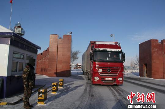 中國境內(nèi)的貨車在經(jīng)過查驗(yàn)后漸漸駛出。
