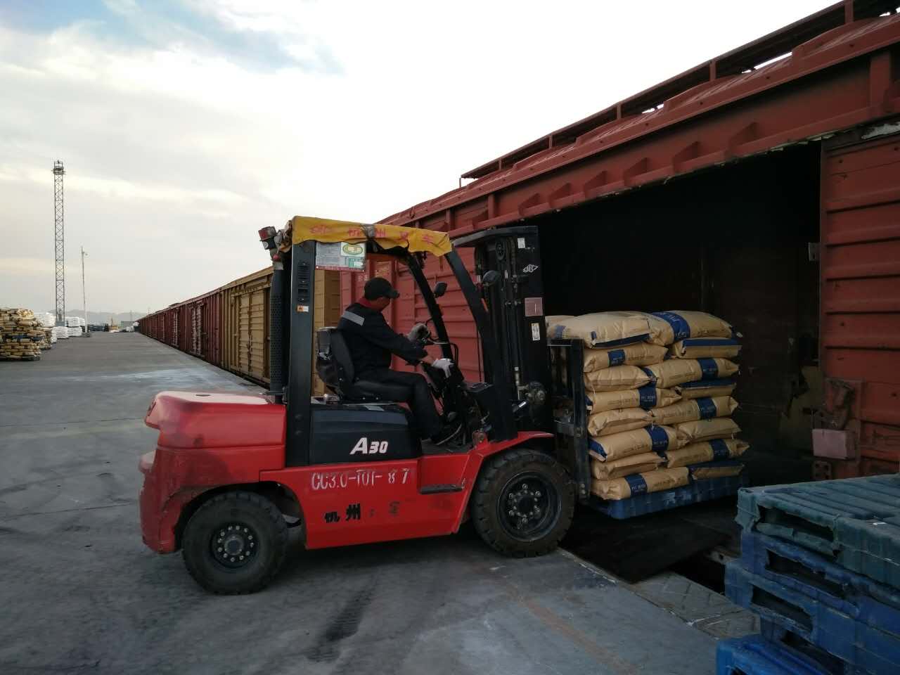 2016年9月9-10日,新疆中泰化學股份有限公司出口的袋裝聚氯乙烯整列棚車,在阿拉山口綜合保稅區(qū)內的地平線鐵路專用線成功裝車。此次共裝58噸/車的貨物計30車、63噸/車的貨物計10車,共40節(jié)哈方車皮,總重量為2730噸,終到站為烏茲別克斯坦的塔什干站。