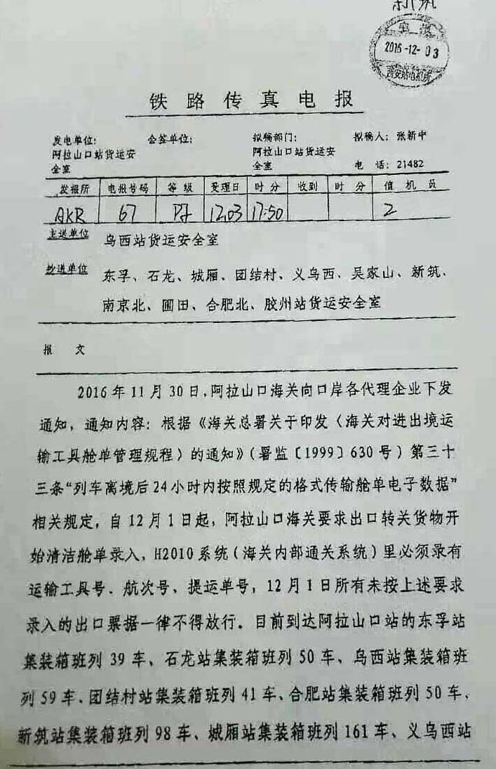 而各地陸續(xù)發(fā)運的鐵路班列,為保證運輸效率,發(fā)運地采用先報關后裝車方式,造成轉關單不符合口岸海關要求,因此導致阿拉山口口岸貨物大量滯留,截至發(fā)稿已逾1000車,只能采用人工補錄放行的處理方式,擁堵或將持續(xù)較長時間。